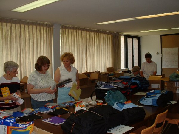 Provides a backpack and supplies for school-aged children. Congregation members pick possible donations from a list and purchase these items. Volunteers assemble the backpacks.